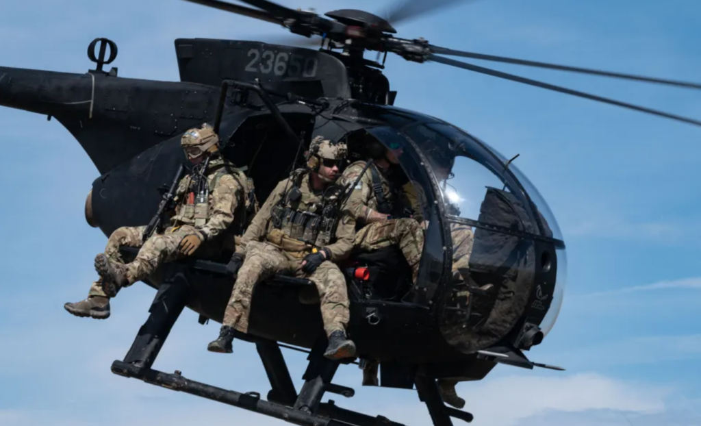 اسی مقام پر امریکی اسپیشل آپریشنز یونٹ "160th اسپیشل آپریشنز ایوی ایشن رجمنٹ” کے ایم ایچ-6 اور اے ایچ-6 "لٹل برڈ” ہیلی کاپٹرز کے جلے ہوئے ملبے کی تصاویر بھی سامنے آئی ہیں۔ یہ ہیلی کاپٹرز عام طور پر تیز رفتار، کم بلندی پر پرواز اور فوری کارروائی کے لیے استعمال ہوتے ہیں، اور انہیں چند منٹوں میں ٹرانسپورٹ طیاروں سے اتار کر فعال کیا جا سکتا ہے۔