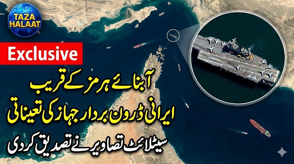آبنائے ہرمز کے قریب ایرانی ڈرون بردار جہاز کی تعیناتی، سیٹلائٹ تصاویر نے تصدیق کر دی